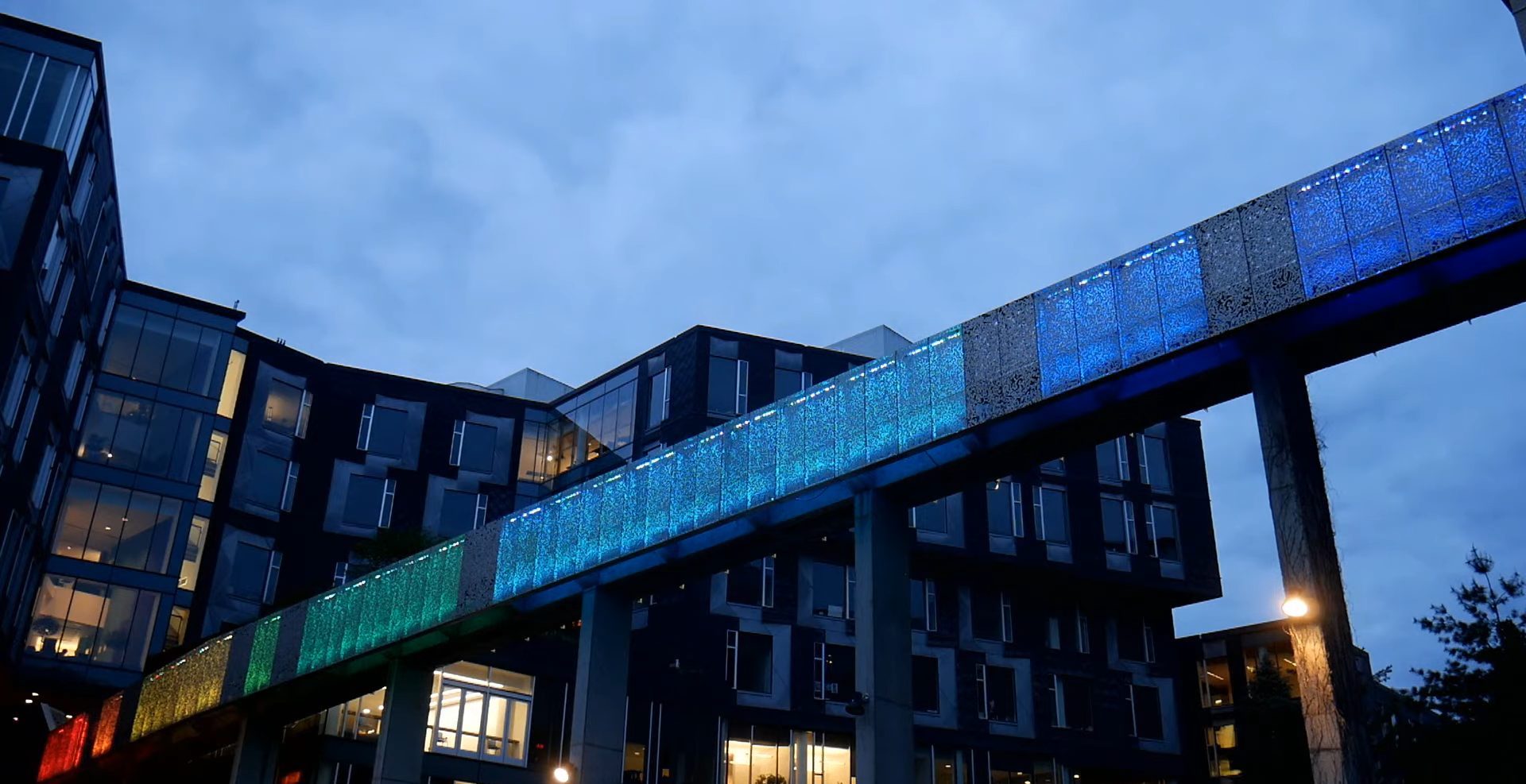 Lighting the Pausch Bridge with mathematical themes, such as the Sieve of Eratosthenes and the digits of pi